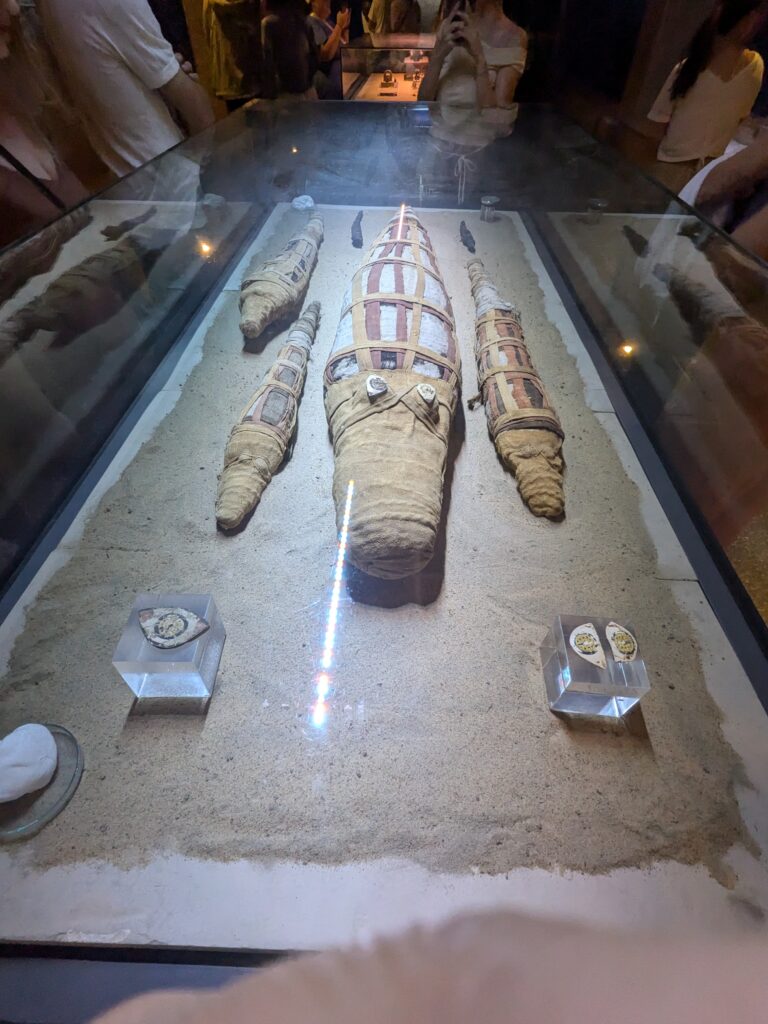 The Sobek half of Kom Ombi is where the temple’s most fascinating — and slightly eerie — history comes alive. Because Sobek was a crocodile god, the people of Kom Ombo kept live crocodiles in the area as sacred animals. When these crocodiles died, they were mummified with the same care given to humans and placed in special burial chambers. Today, many of these crocodile mummies are displayed in the Crocodile Museum next to the temple, offering a rare glimpse into a form of worship that feels both strange and deeply human — a reminder of how closely ancient Egyptians lived with the natural world and how profoundly they revered its creatures.