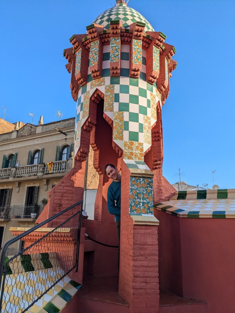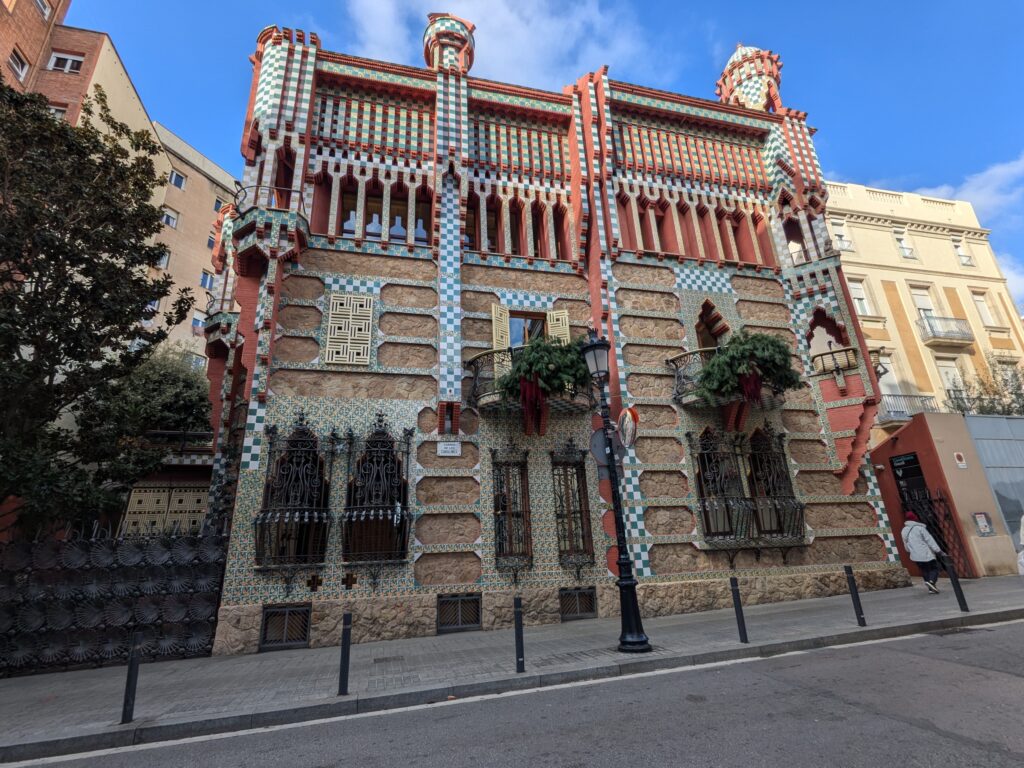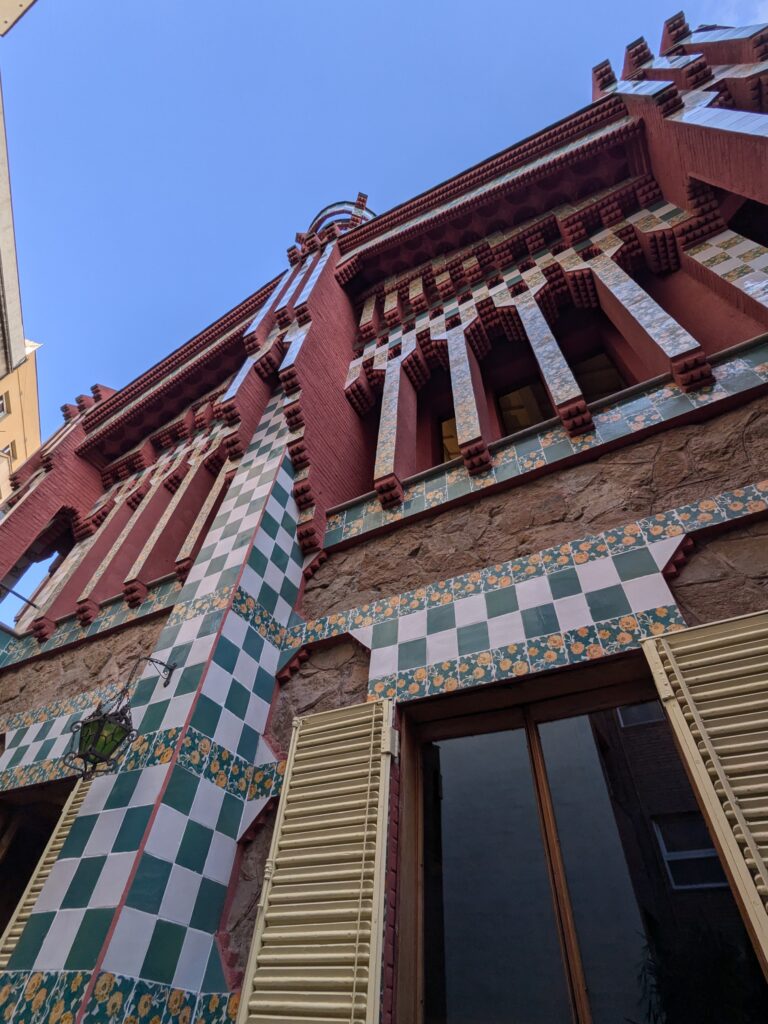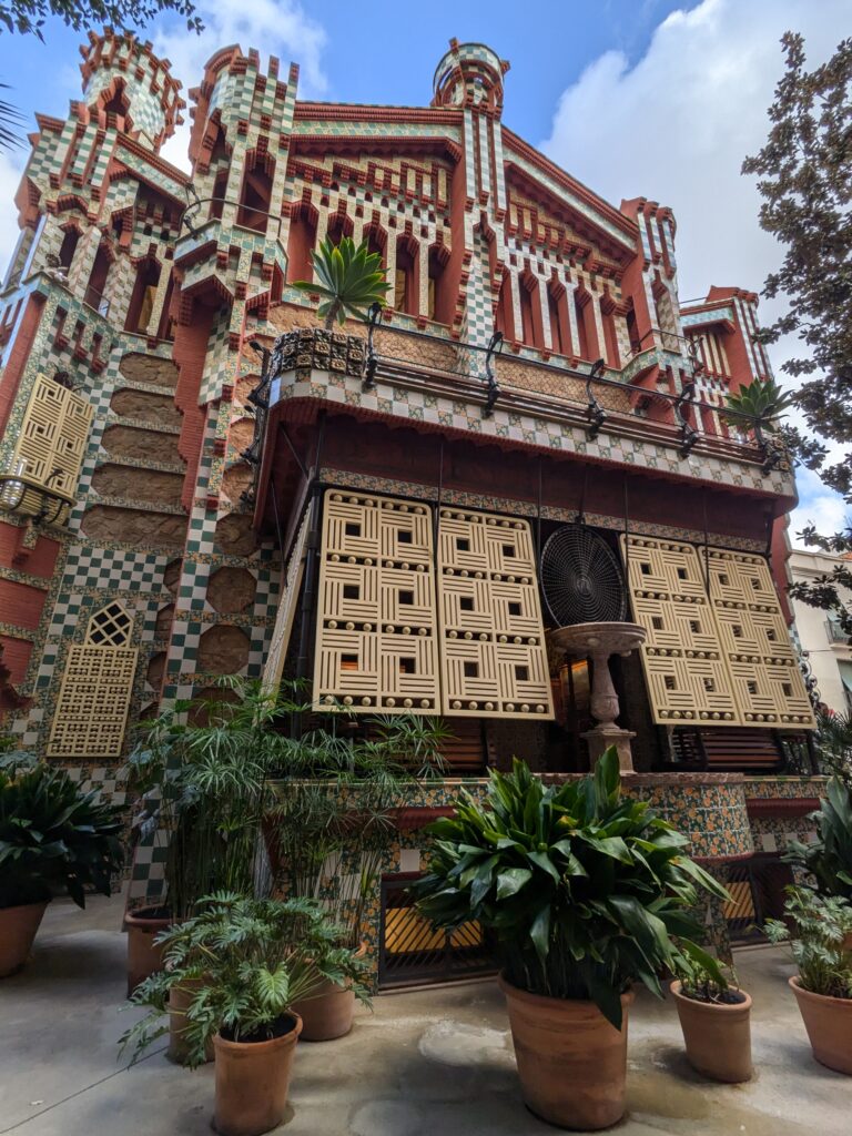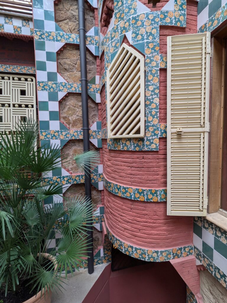 What hits you first, though, is the colour. The façade feels like an explosion — ceramic tiles, brickwork, painted wood, ironwork — all layered together in a way that must have seemed wildly unconventional in the 1880s. At the time, ceramic was mostly used indoors, but Gaudí brought it outside, letting the house shimmer in the sun like something between a Moorish palace and a botanical illustration. It was the first time he used ceramic on a façade, and it certainly wasn’t the last.