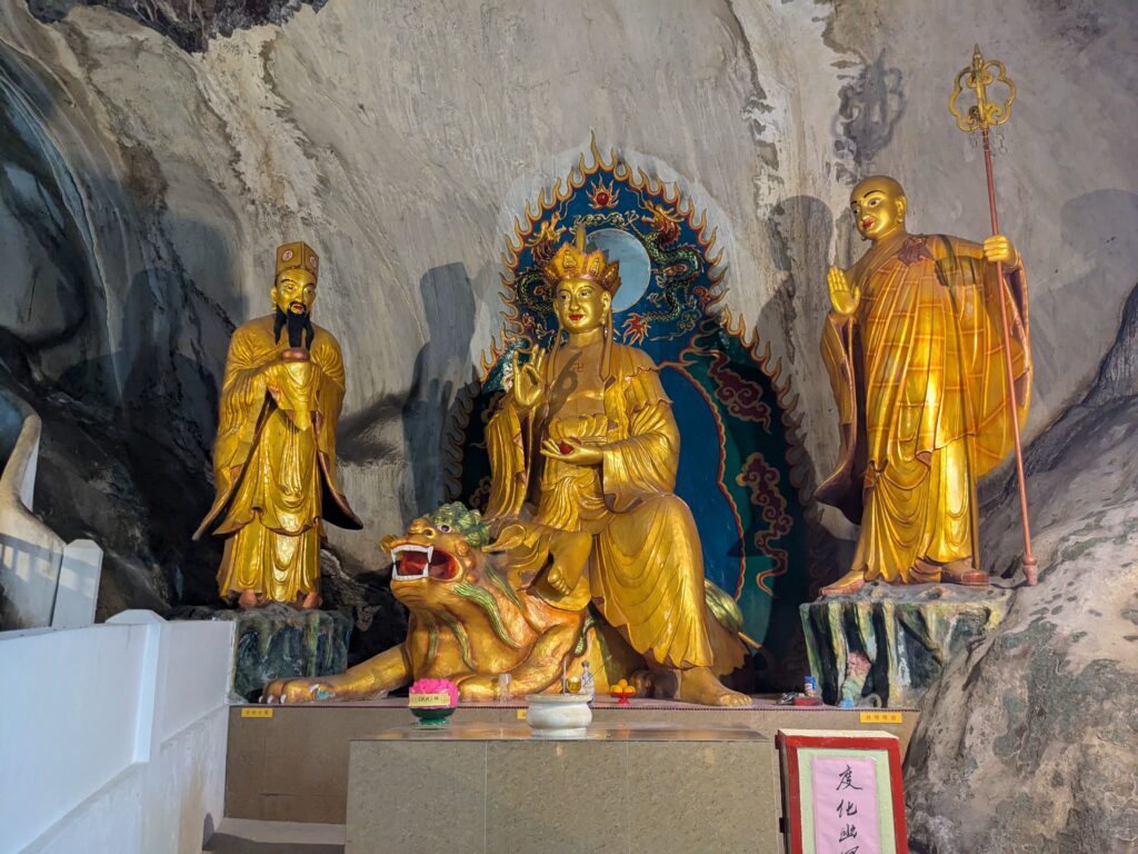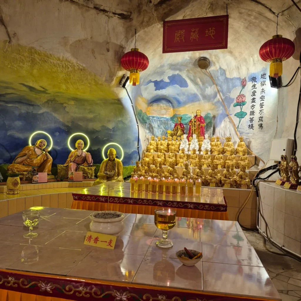 Most of Ipoh’s cave temples are Chinese Buddhist temples, often shaped by Mahāyāna traditions. Some are quiet and contemplative, built deep inside the limestone caverns. Others spill outward with colorful statues and gardens. Each one feels different, shaped as much by the mountain as by the people who built it.