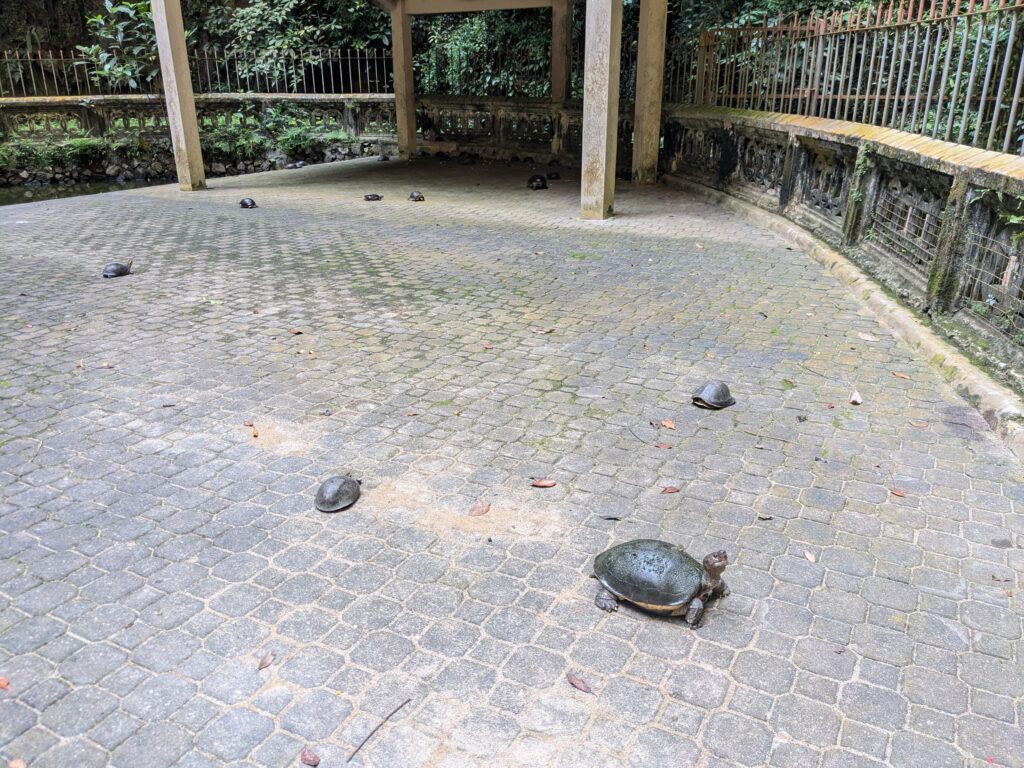 Outside, there was a beautiful koi pond garden out front, and turtles with a red pagoda in the back.