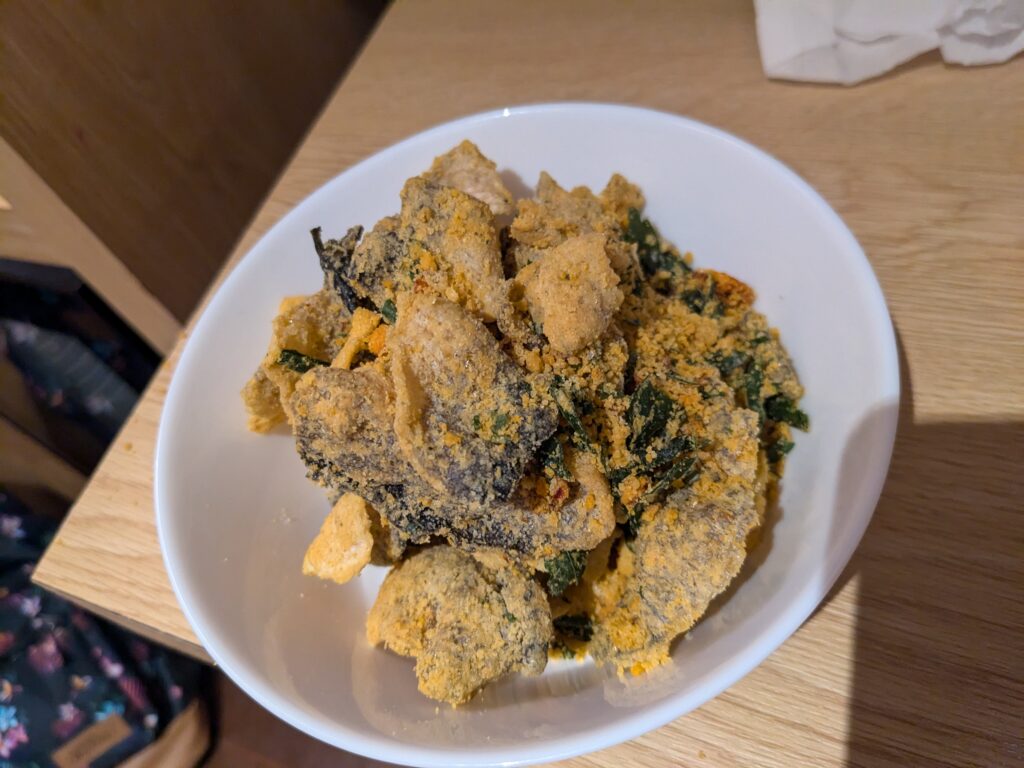 I know “Salted Egg Crispy Fish Skin” sounds… totally weird. Fish skin? Salted egg? What?