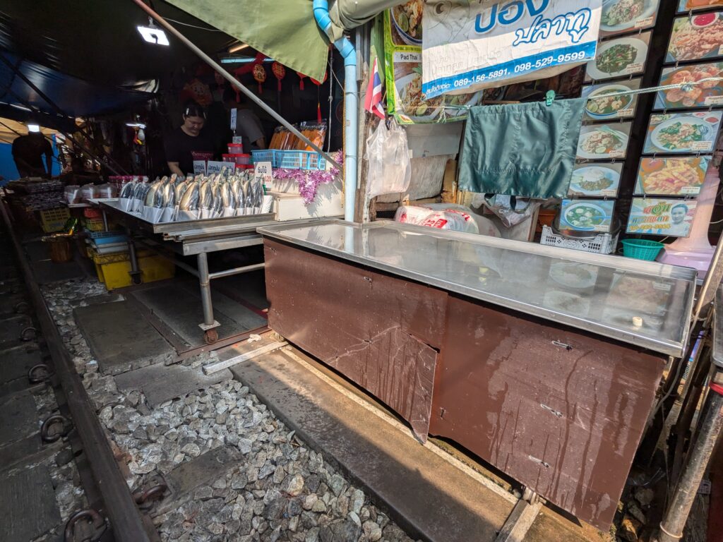 Later, avoiding rent become part of the reason they stay. If you sell on the track, you don’t pay for shop, you don’t pay for stall. But this was not the first reason – it was just smart benefit. The real reason is location. Maeklong is most famous railway market (but they exist all over Thailand). The area is famous for seafood. The market must be close to the fishing port, close to the people who buy fresh fish every morning. If they move far away, they lose everything.