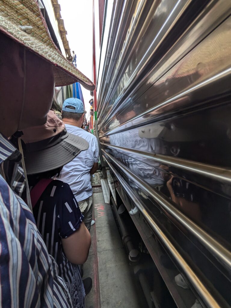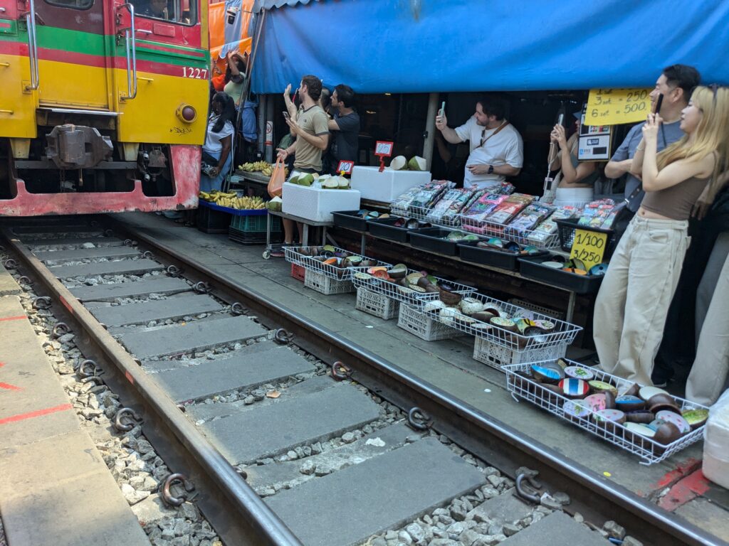 And then tourism come. People from all over the world want to see the train pass through the market. So now the vendors have even more reason to stay. When you stand there and the train pass just one arm away, you feel excitement but also respect. You see how Thai people adapt, how they stay calm, how they smile even when train almost touch their basket of chili.